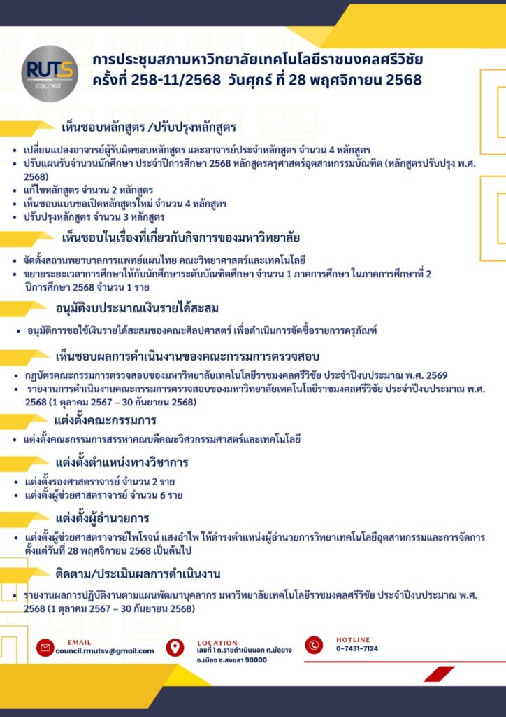 สรุปมติสภามหาวิทยาลัย สรุปมติที่ประชุมสภามหาวิทยาลัยฯ ครั้งที่ 257-10/256826 ธันวาคม 202526 ธันวาคม 2025